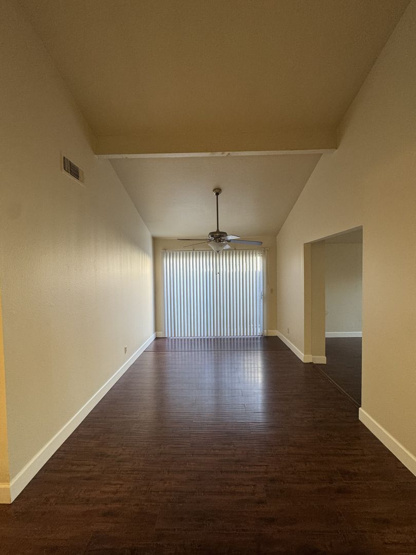 Spacious 3 bedroom duplex features a modern kitchen with granite countertops, stainless steel electric oven, dishwasher, refrigerator, and ample cabinet space. Laminate flooring runs throughout the home, complemented by tiled bathrooms with newer vanities. Bedrooms are generously sized with good closet space. The vaulted dining room includes a ceiling fan and opens to a private rear yard, while the living room offers a cozy fireplace. One car garage with laundry hookups. Fresh interior paint & blinds. Close to HWY 50, restaurants, shopping & light rail. Tenant pays a flat fee of $125 toward utilities and is responsible for low maintenance yard. One small pet may be negotiable with additional pet rent. NO SMOKING PLEASE! Contact Drysdale Property Management at (916) 609-2087 or visit our website at www.drysdalepm.com and fill out a guest card to schedule an appointment to view.