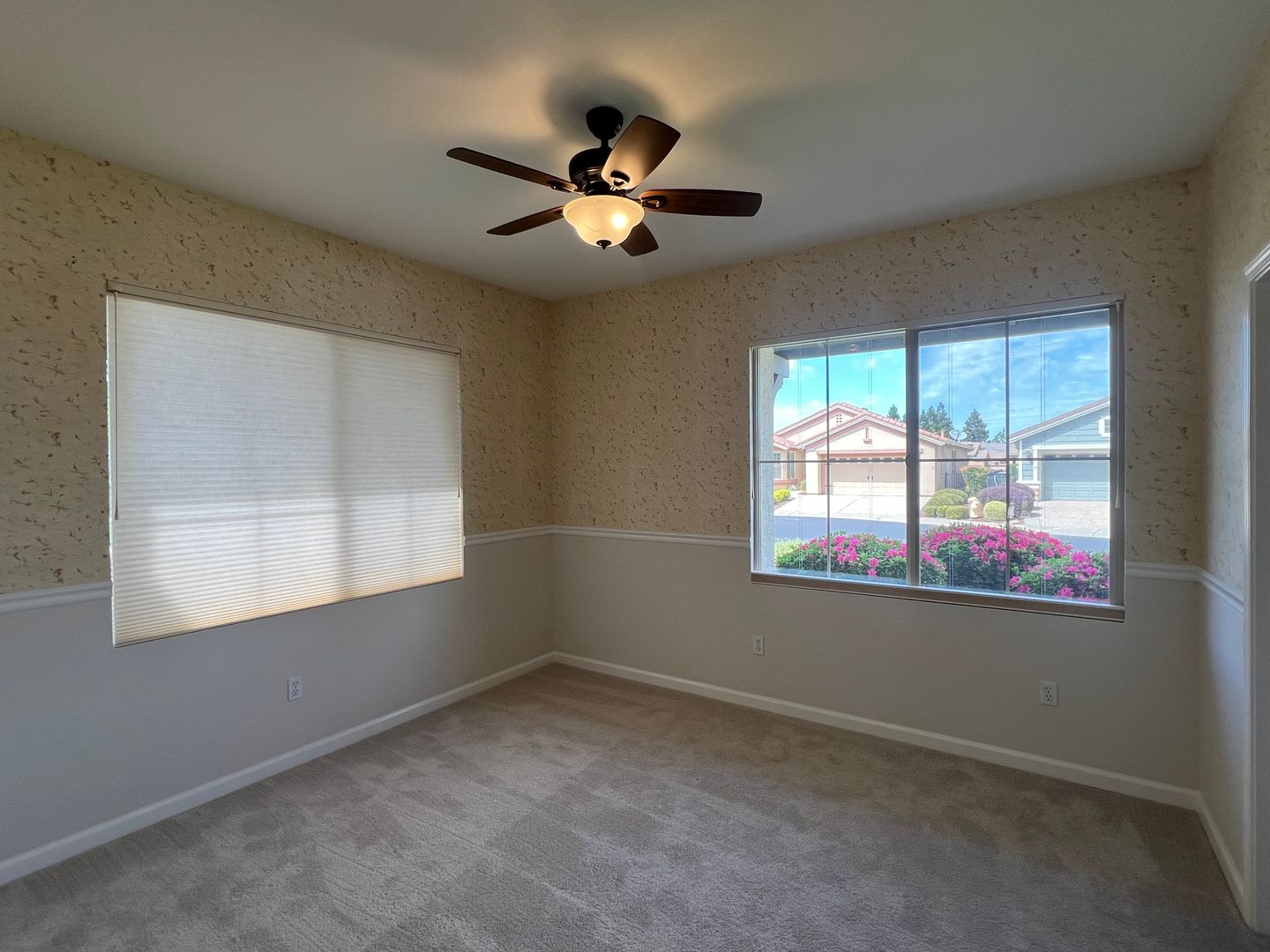 This gorgeous home in Sun City Lincoln Hills features 2 bedrooms, 2 bathrooms and a versatile den/office with built-in custom desk and bookcases! The kitchen features updated stainless appliances, pull out custom cabinets, a center island and a pantry for extra storage. The spacious living area has a gas fireplace and looks out to the stunning backyard. The primary suite includes a large walk-in closet and the bath offers dual sinks, generous storage, and a walk-in shower. Outside you will find a beautiful yard complete with a large, covered patio with ceiling fans and raised vegetable beds. The expanded 2.5-car garage provides room for a golf cart and has extra storage with cabinets. It also includes a utility sink and has access to the side yard. Other features of this home include dual pane windows and solar for energy efficiency, a whole house fan, electric blinds and fresh paint throughout! Tenant has access to all facilities at the clubhouse, including indoor and outdoor pools, hot tub, fitness center, spa, restaurant, walking track, and more. Must see to appreciate! Tenant pays flat rate of $175 for water/sewer/garbage and owner pays for landscaping and HOA dues. One small pet may be negotiable with increased deposit. Applicants must be 55 and older to apply for this property. Call Drysdale Property Management at 916-609-2087 or visit our website at www.drysdalepm.com and fill out a guest card to schedule an appointment to view. No smoking please!