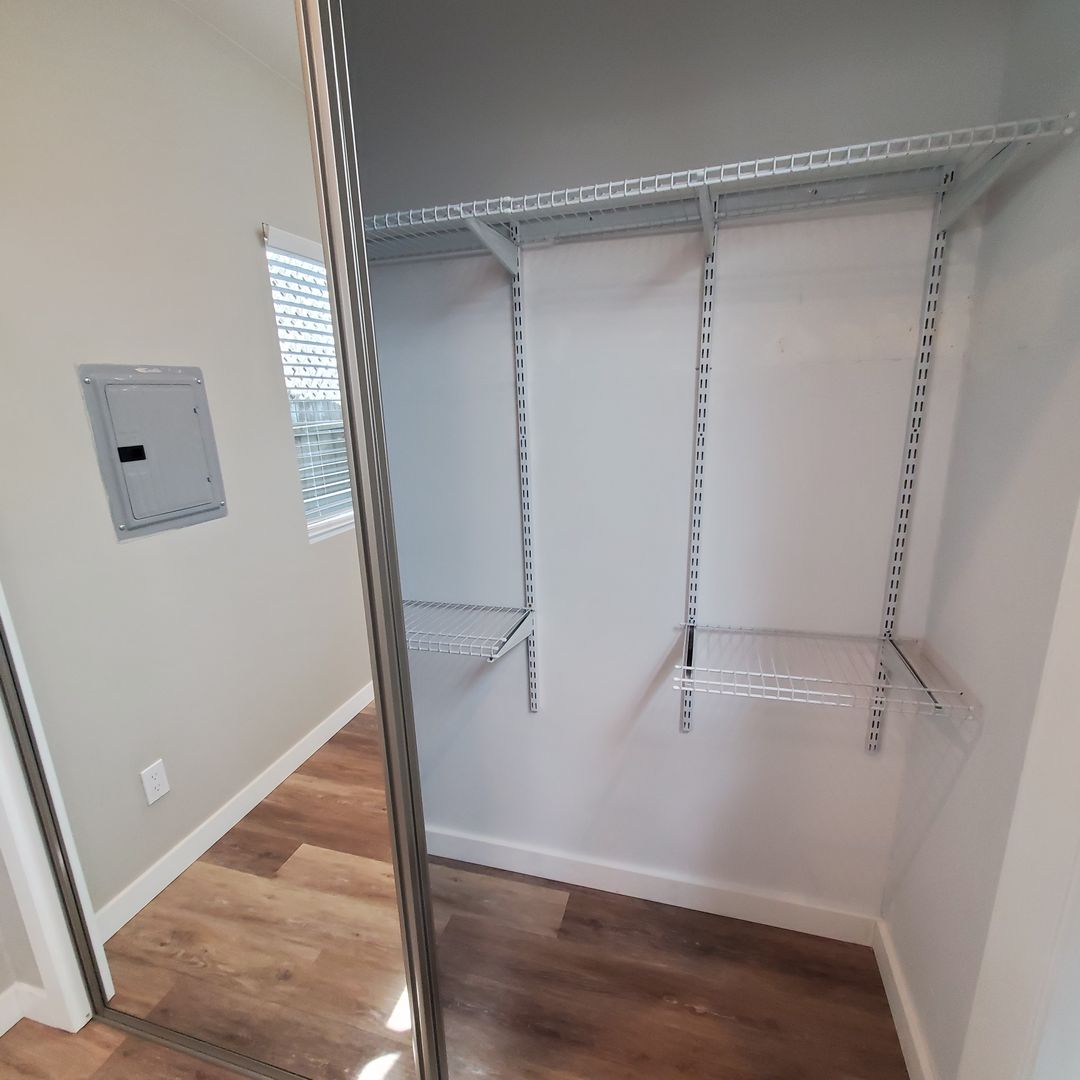 The bedrooms both have skylights and large closets with organizers. The rooms are serene.