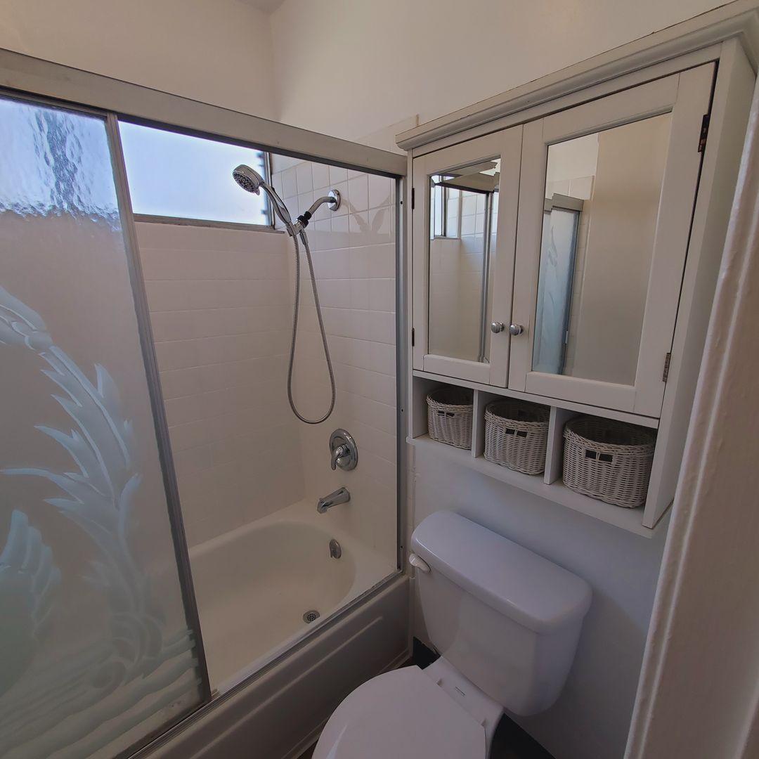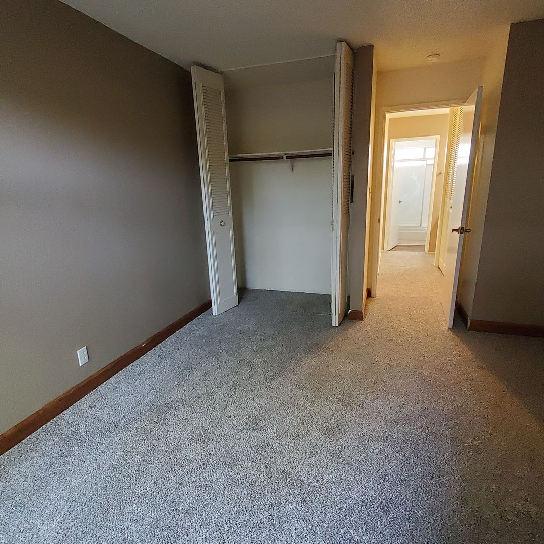 The spacious bedroom has good closet space and a window out to your patio.