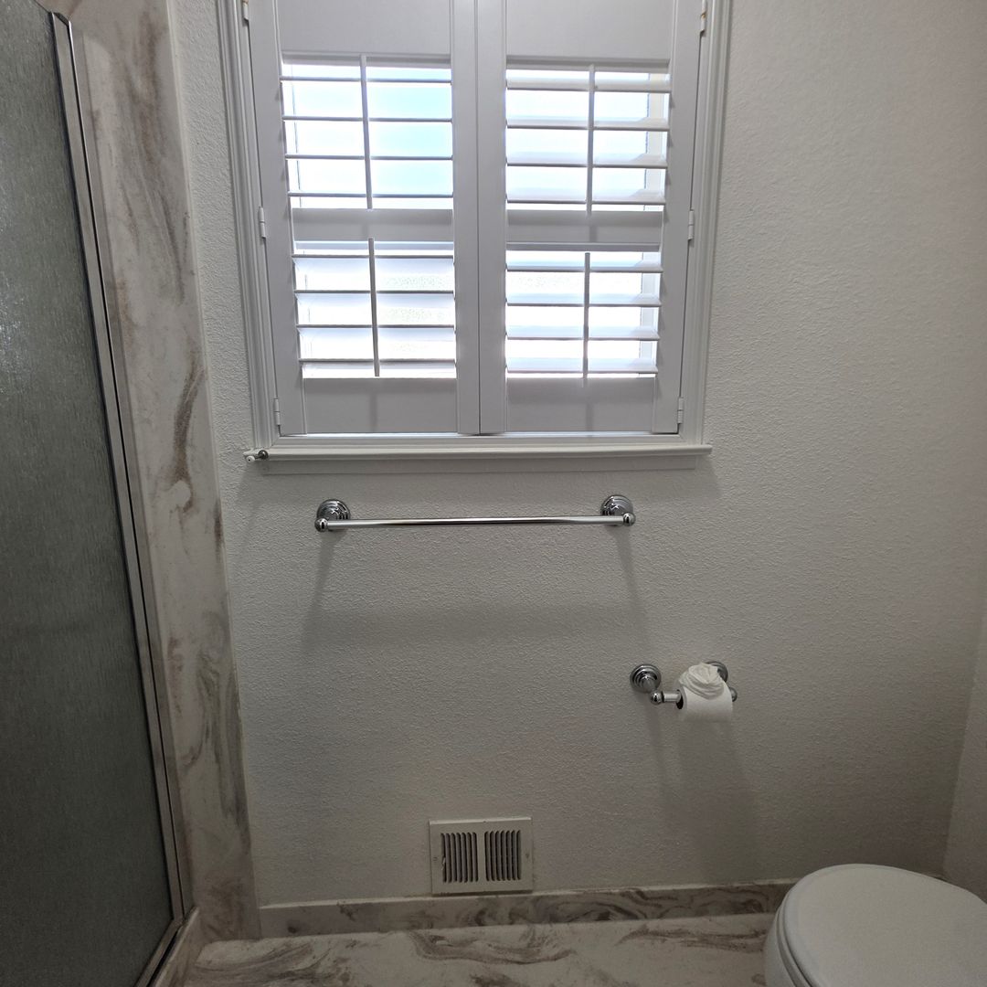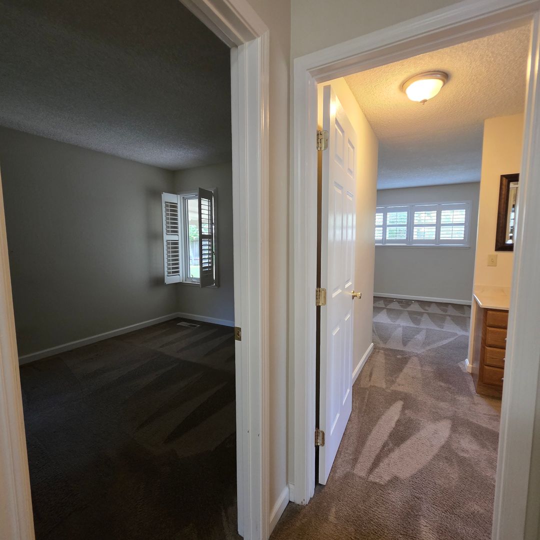 Inside, relax in the spacious, carpeted living room with high ceilings and picture window looking onto the front yard. Louvered shutters throughout the home, let you control your light and privacy.