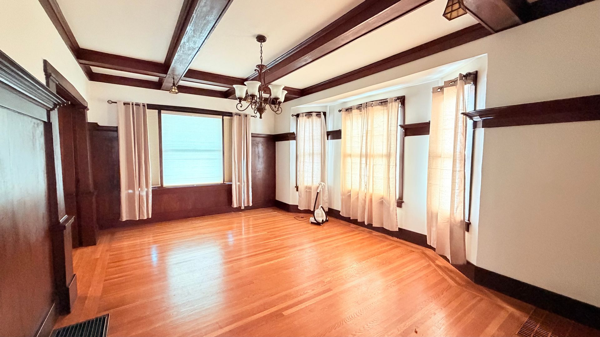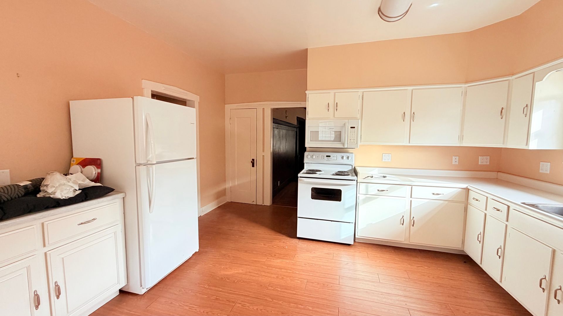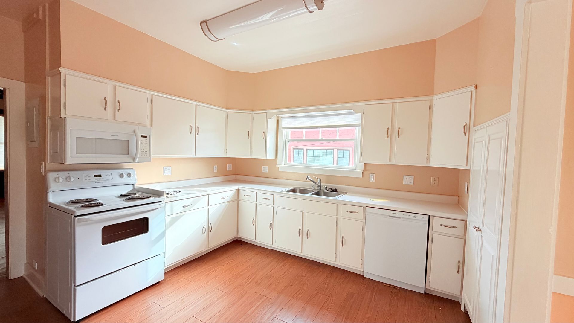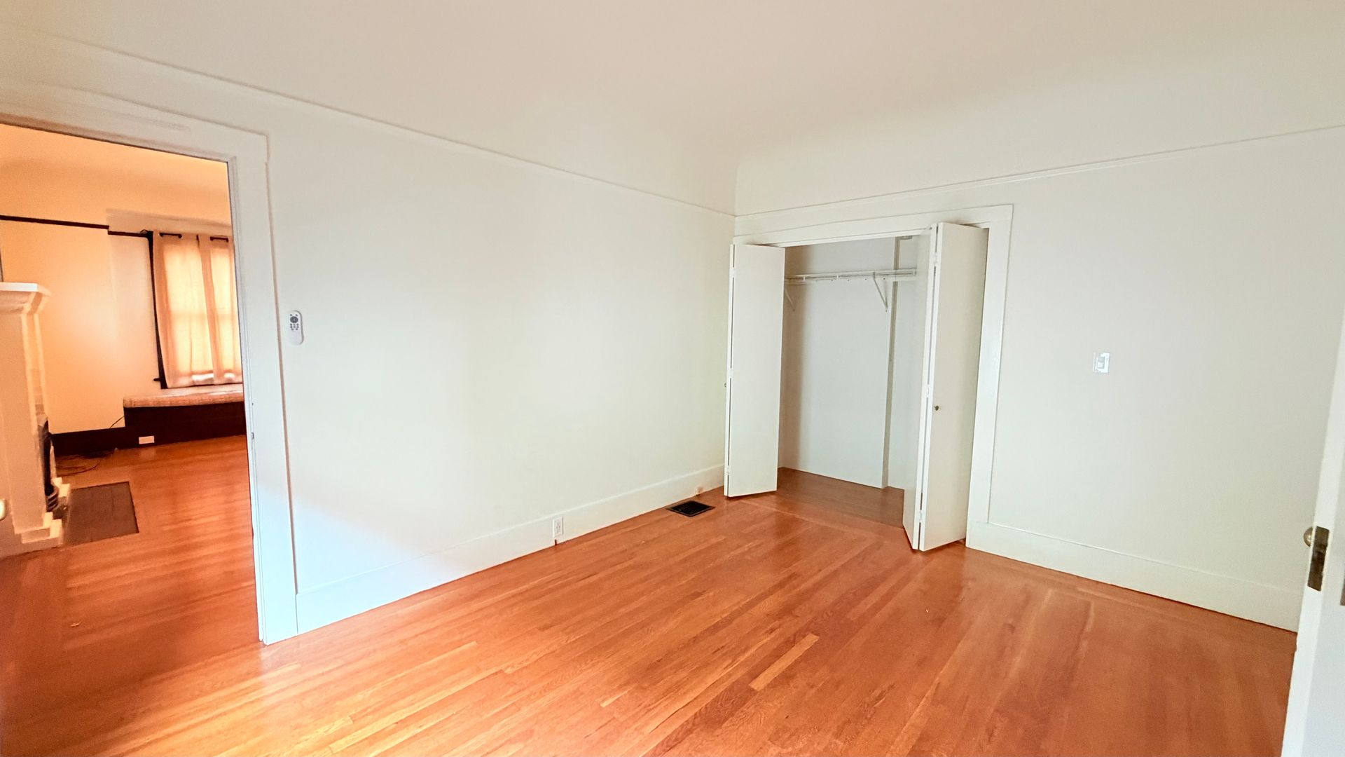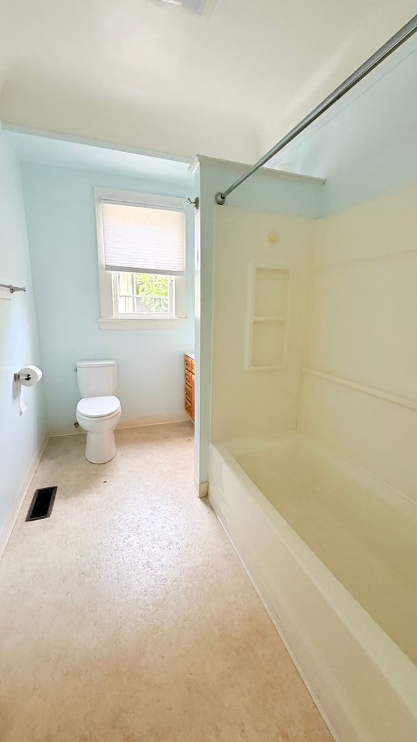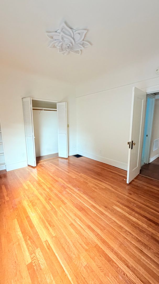 This lovely 2-bedroom, 1-bath features beautiful wood and linoleum flooring throughout, complemented by light-colored walls that create a bright, welcoming atmosphere. Large windows provide an open feel and allow abundant natural light to fill the space.