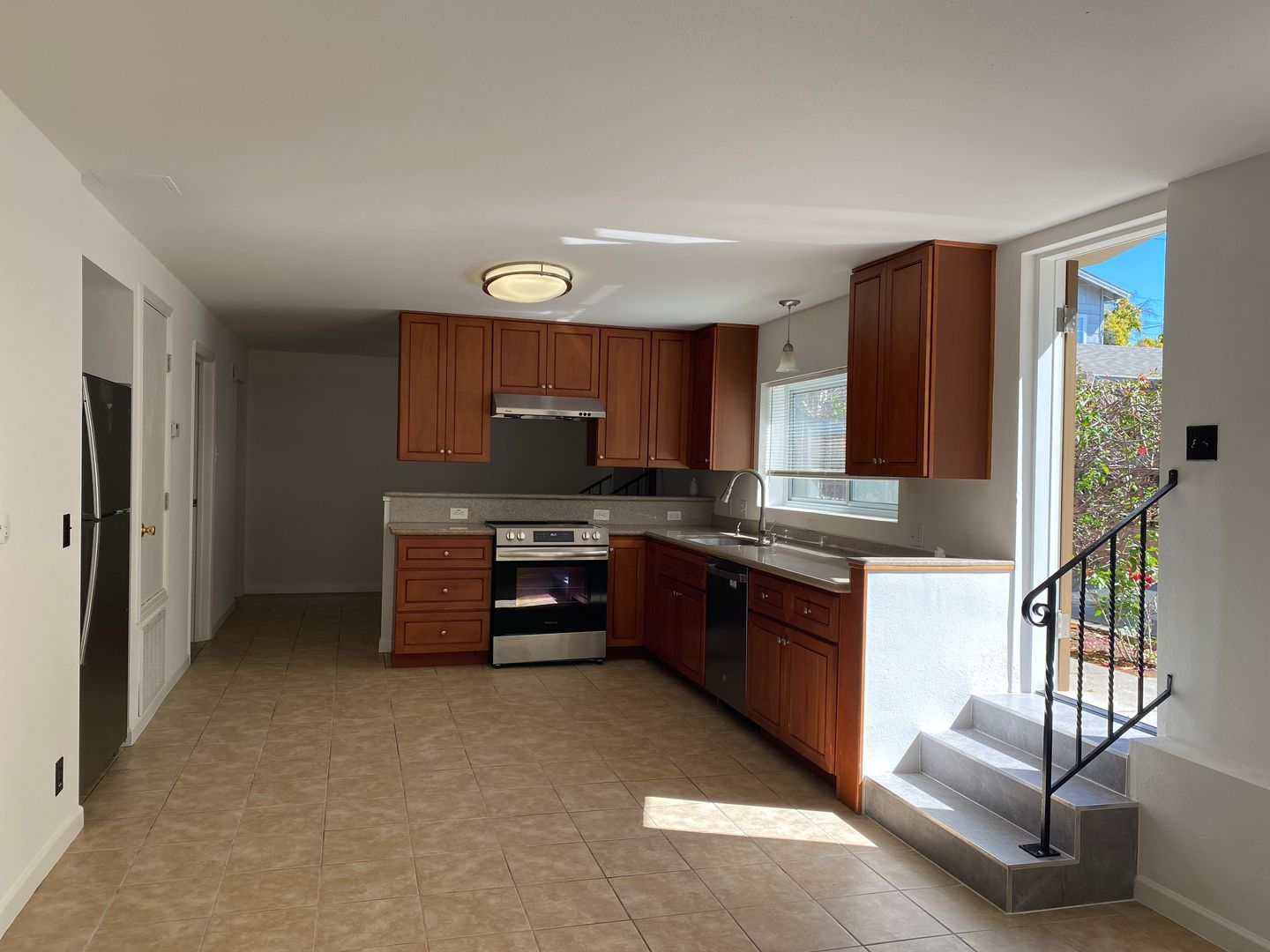 Discover comfort and convenience in this charming downstairs 3-bedroom, 2-bathroom unit located in the heart of Alameda. This home features modern laminate flooring throughout and a clean, bright aesthetic. The kitchen comes equipped with essential appliances, including a refrigerator, a stainless steel stove, and a matching stainless steel oven hood.